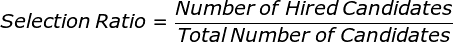 The selection ratio refers to the number of hired candidates compared to the total number of candidates. The selection ratio provides information such as the value of different assessment tools and can be used to estimate the utility of a given selection and recruitment system.