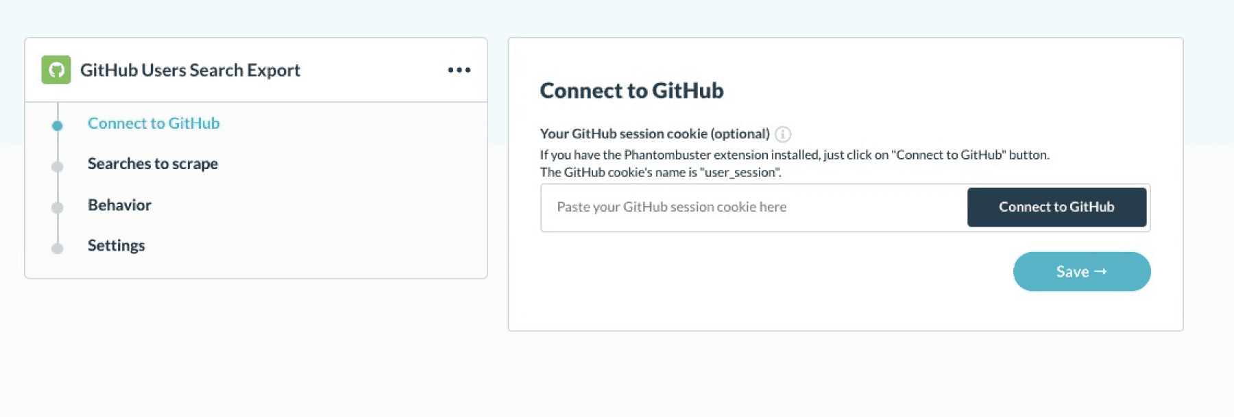 2: Next, open up the GibHub Users Export Phantom. It will scrape your search in step 1. In return, you are able to extract names, follower counts, and email addresses from GitHub.