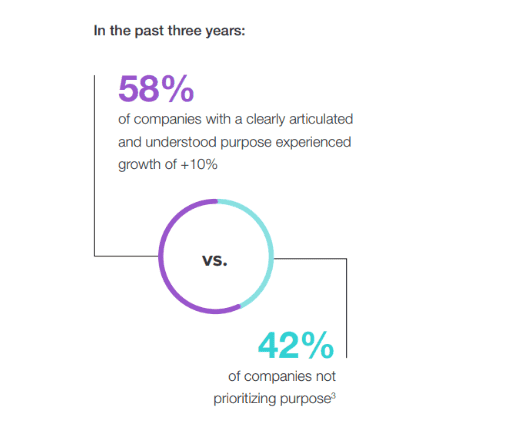 How does it help to retain high-performing employees? One study by LinkedIn found that 58% of companies with a clearly articulated and understood purpose experienced growth of +10%. Moreover, 39% of purpose-oriented employees are likely to stay at their company for 3+ years.