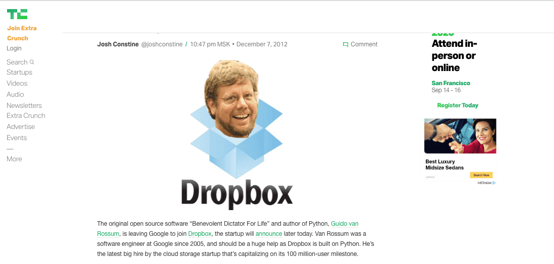 The tactic perfectly works for startups as well. Let’s look back to 2012, when a Dropbox, which was much smaller than it is now, has hired Guido van Rossum, the father of Python. The thing is he was hired away from Google. This was not impossible to do for a no-name company. But Dropbox succeeded, and in the following years, its Python development has skyrocketed.