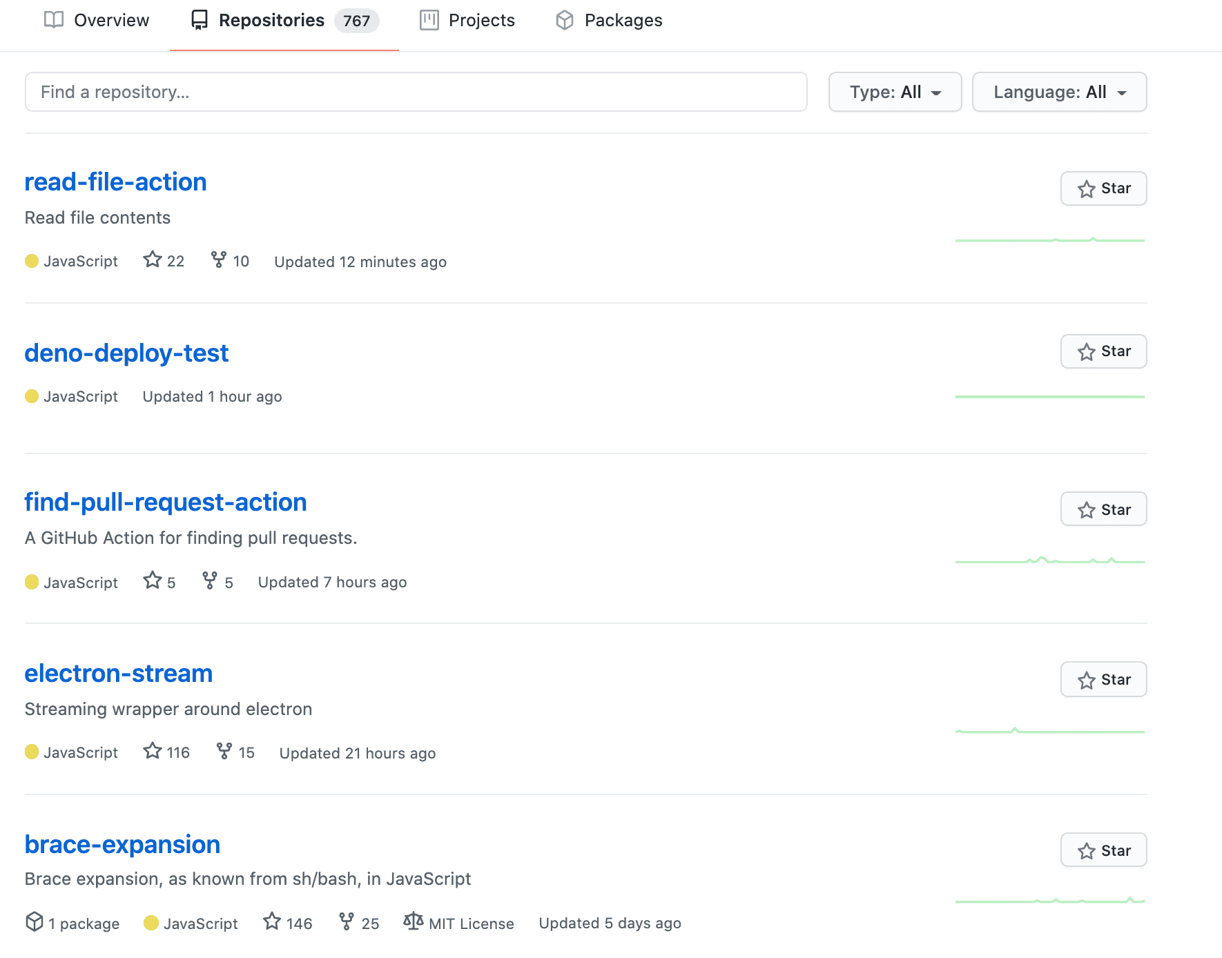 In this section, you can see the contribution made by the developer to other projects on the site. Even non-IT recruiters can extract some information from this section. For example, look for the keywords related to the coding languages the candidate uses in their work (for instance, if they contributed to the Javascript project, you might see the word “Javascript”).