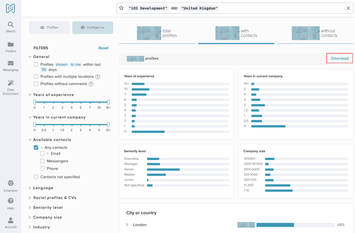 Nowadays, employer competition is a pretty much ferocious battle. You have to be armed and dangerous. And having aggregate data for any location’s talent pool — candidates’ quantity, density, distribution, expertise, employment history, titles, and more — sounds essential. Absolutely crucial when it comes to entering a new market. With , you will be able to look into the talent landscape from a bird’s eye view and come up with the most efficient search strategy.