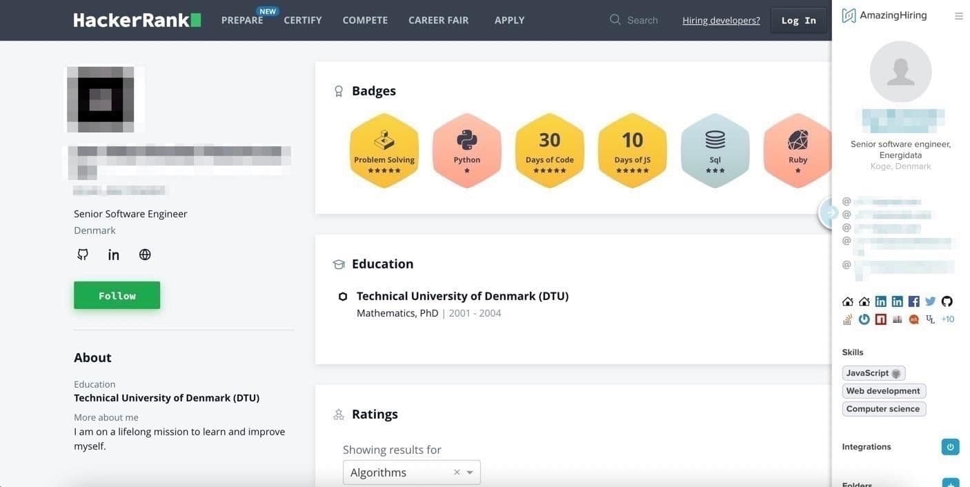HackerRank is also a community of more than 15 million skilled developers which makes it an actual talent pool. By the way, with our Chrome extension you can get more info about candidates while sourcing them on different social and professional networks: