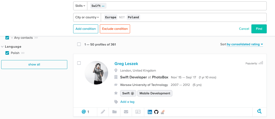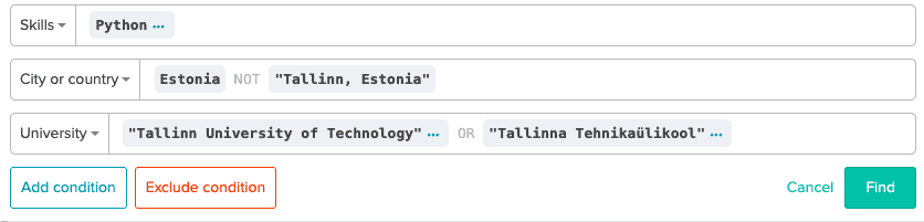 You may need to find candidates outside capital cities but who have studied in top universities. Or you’d like to alter your search queries to find new profiles whom you haven’t sourced yet.