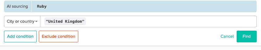 Easy! Let’s search for UK companies that top-ruby developers are employed by. Enter your requirements to the AI search in AmazingHiring.